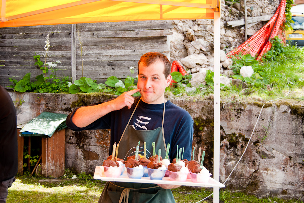 Novità di quest’anno, alla fine del pasto è arrivato il dolce, con lo squisito gelato arrivato direttamente dalla gelateria di Adriano Corona, uno degli ultimi arrivi del nostro paese, cuch, da Mezzano ai Pante.